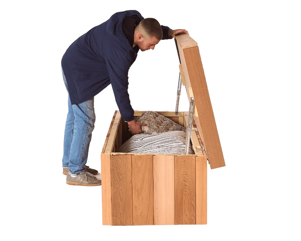 Keep your garden clutter-free with a discreet, waterproof outdoor storage bench in Western Red Cedar.Â